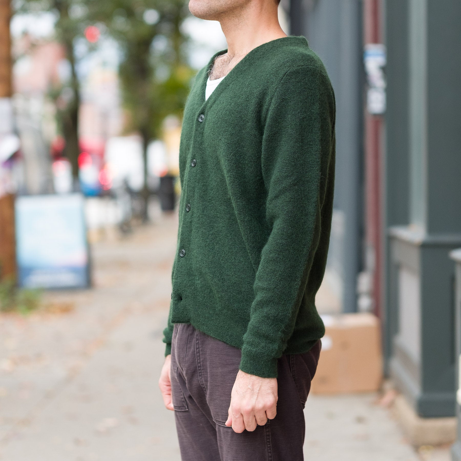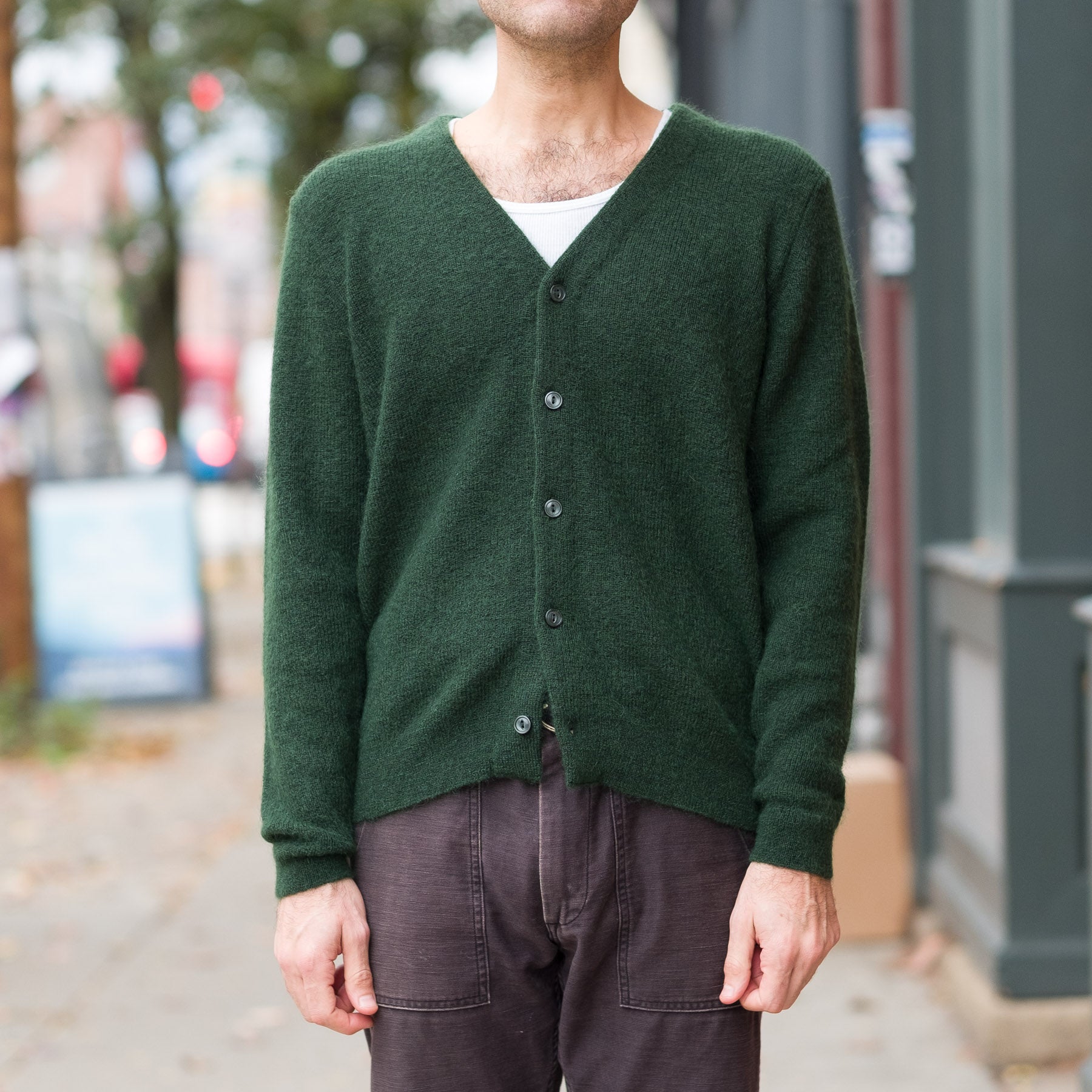 10G Mohair Cardigan in Dark Green