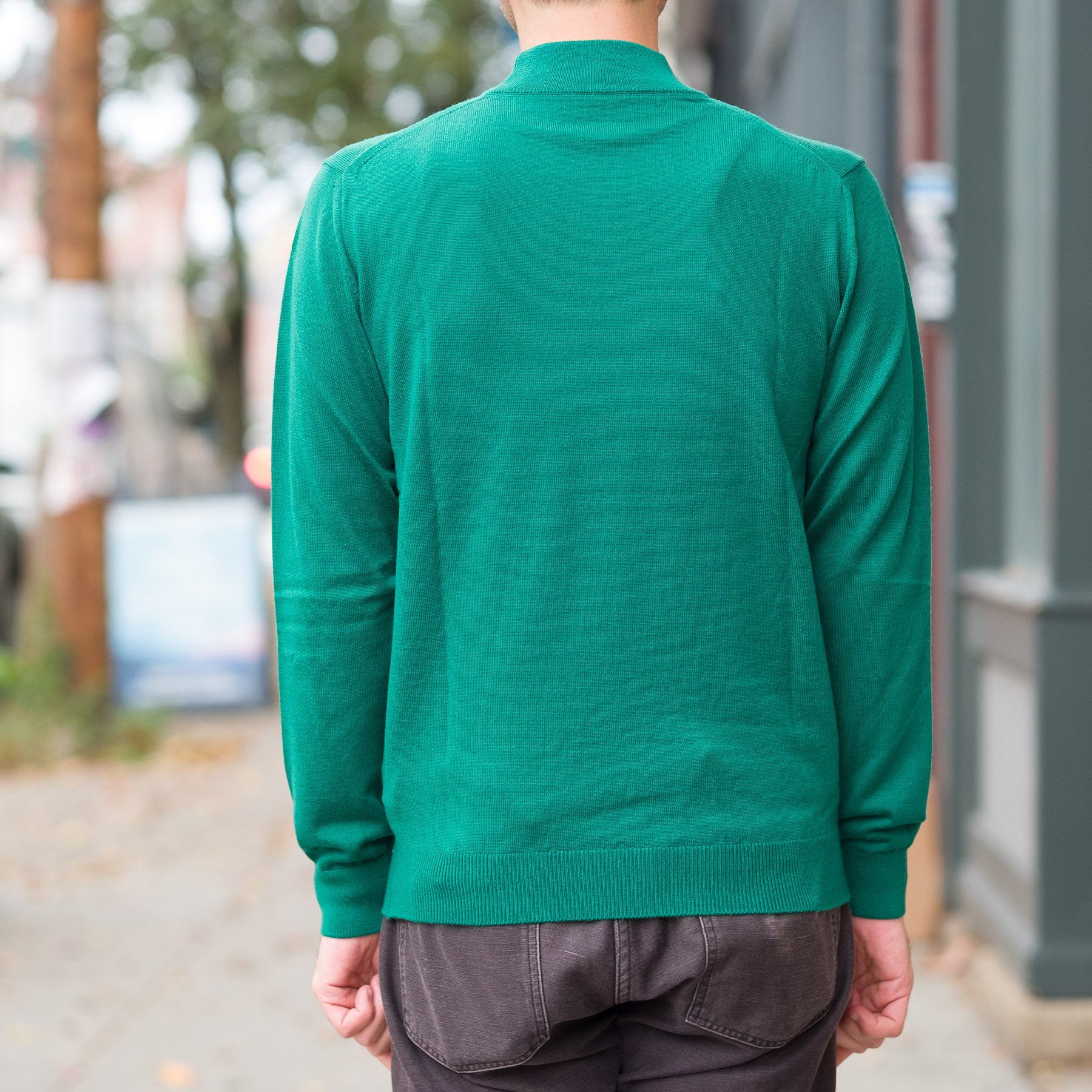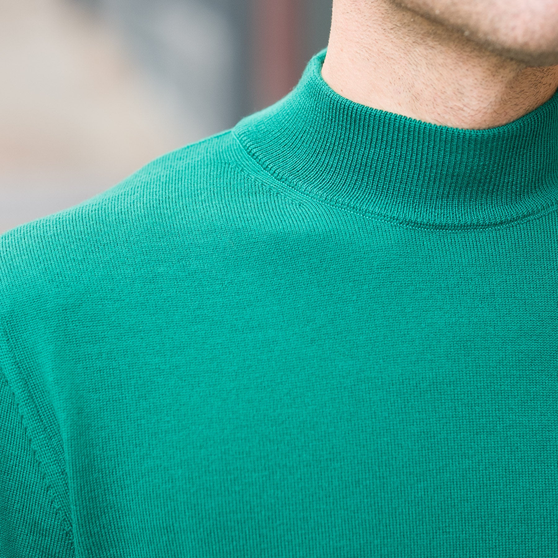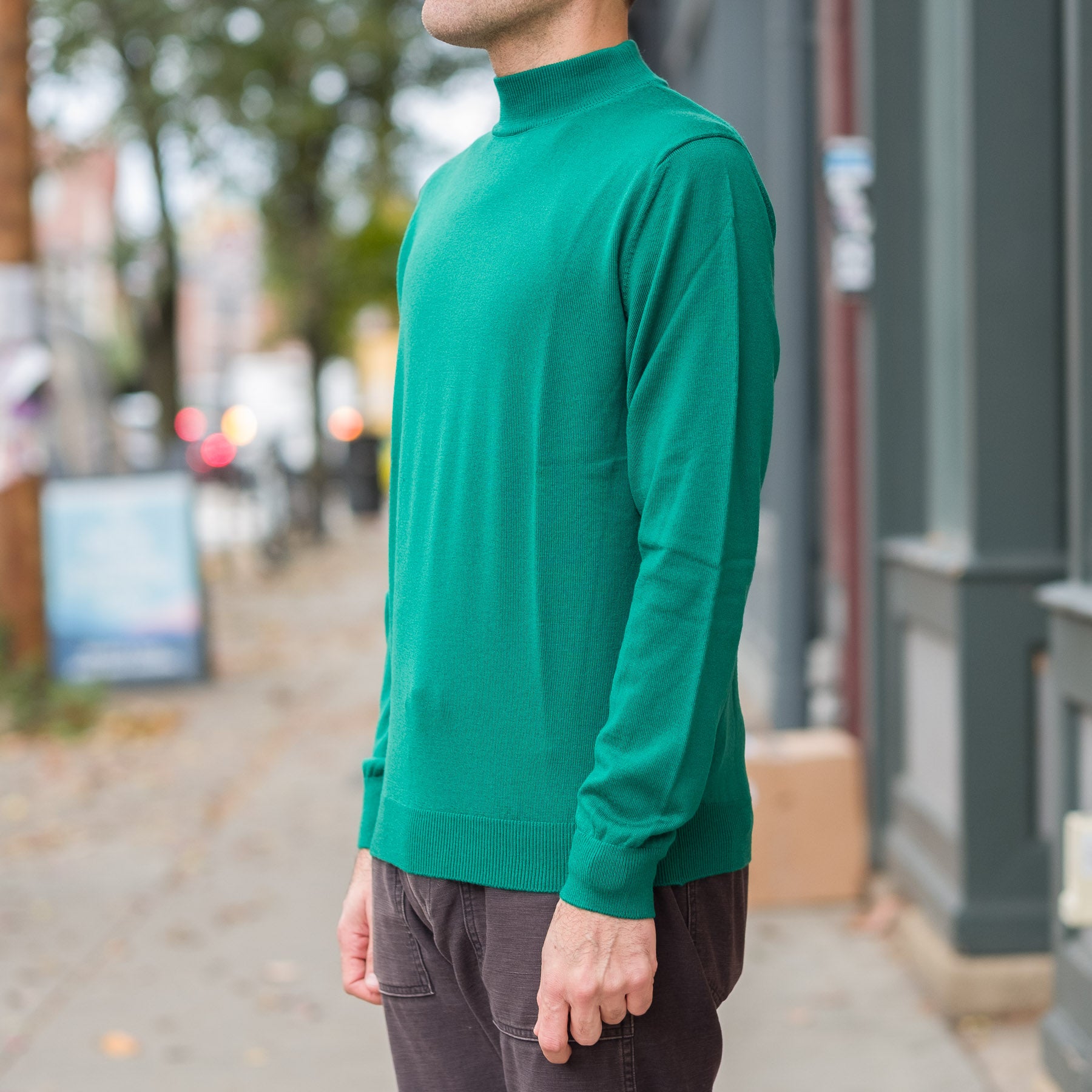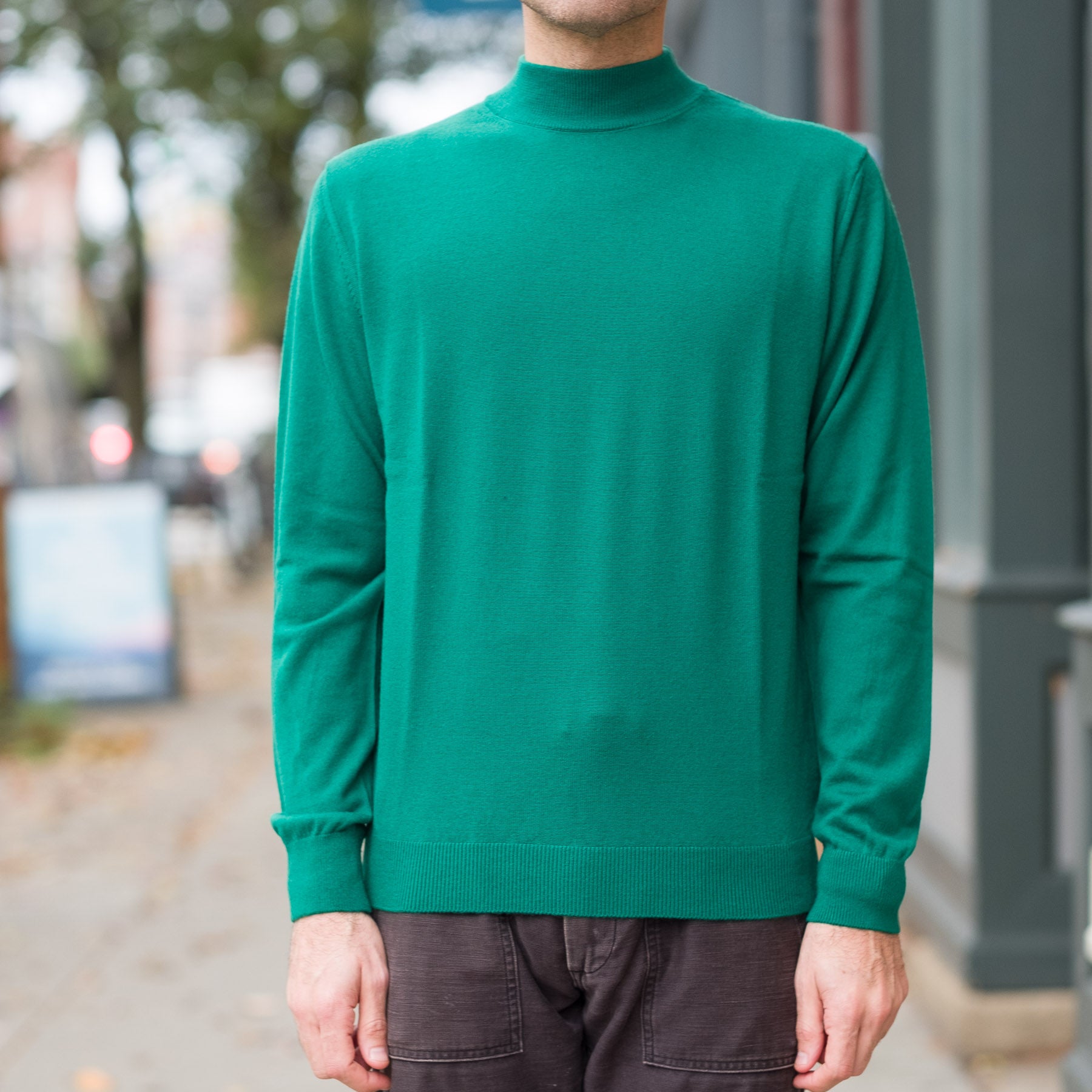 12G Lightweight Merino Wool Mockneck in Grass Green