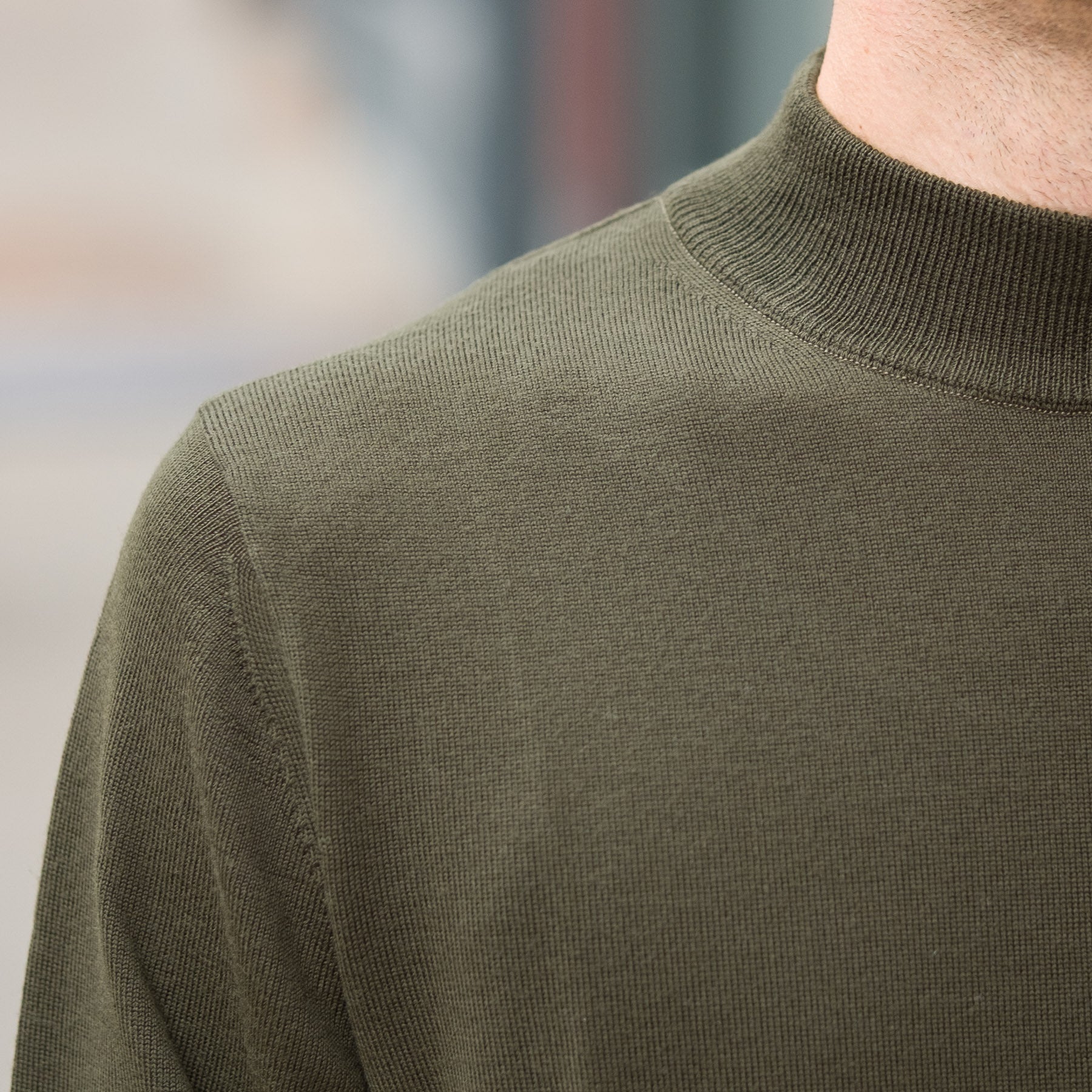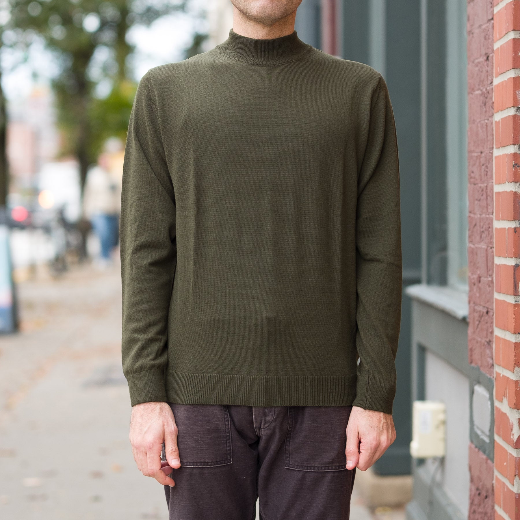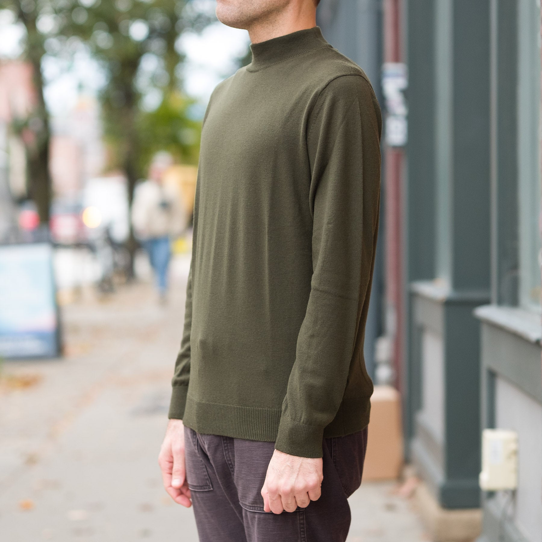 12G Lightweight Merino Wool Mockneck in Olive