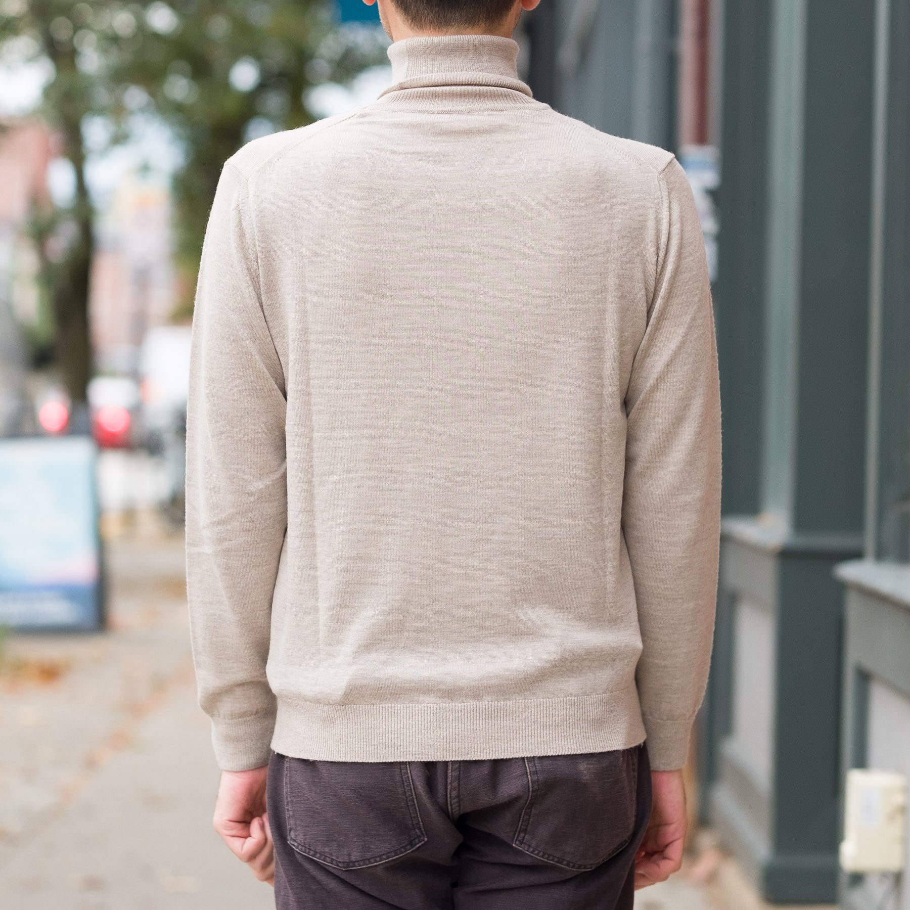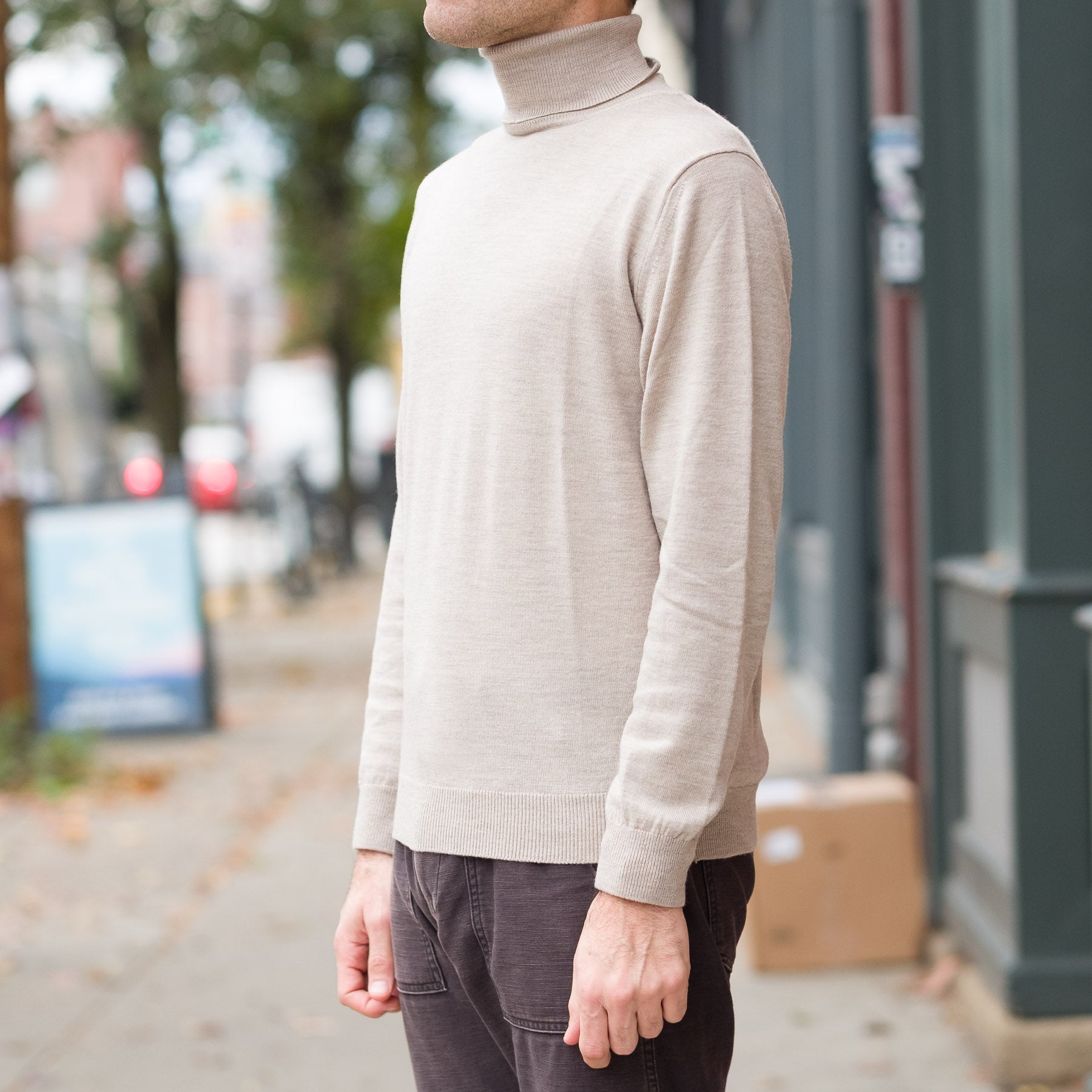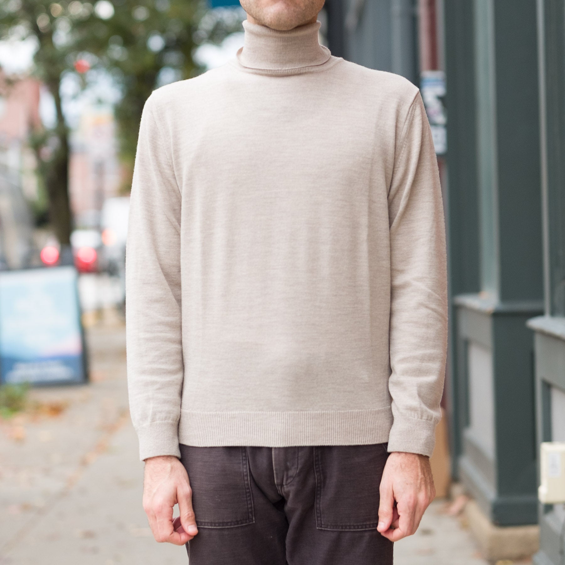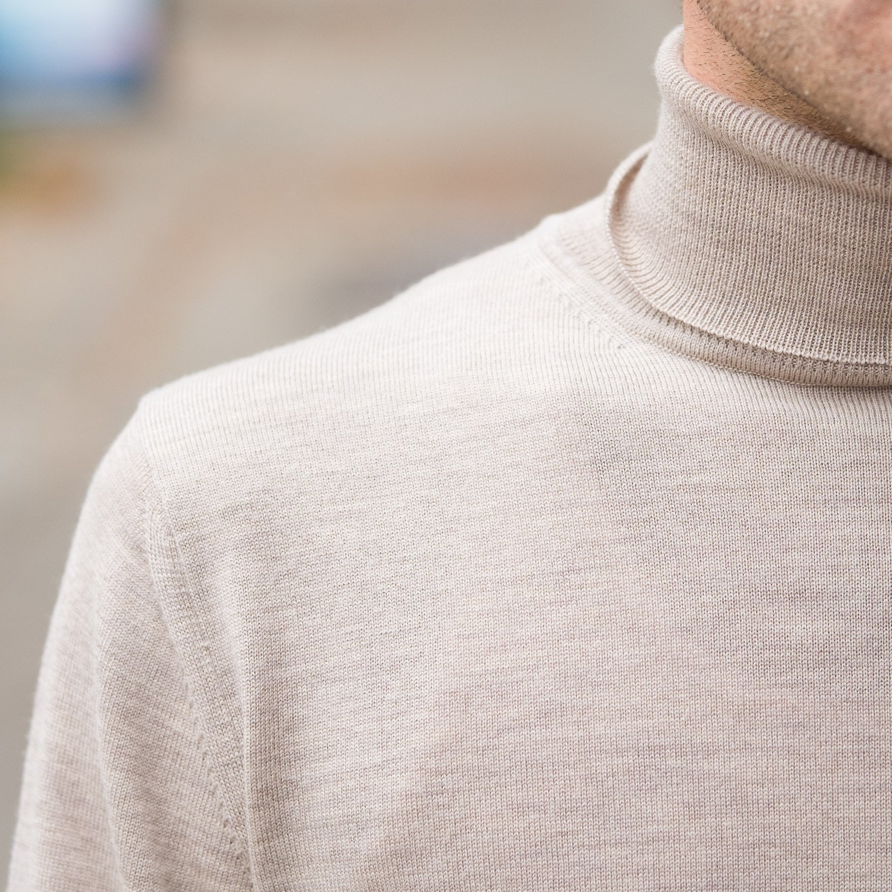 12G Lightweight Merino Wool Turtleneck in Beige Melange