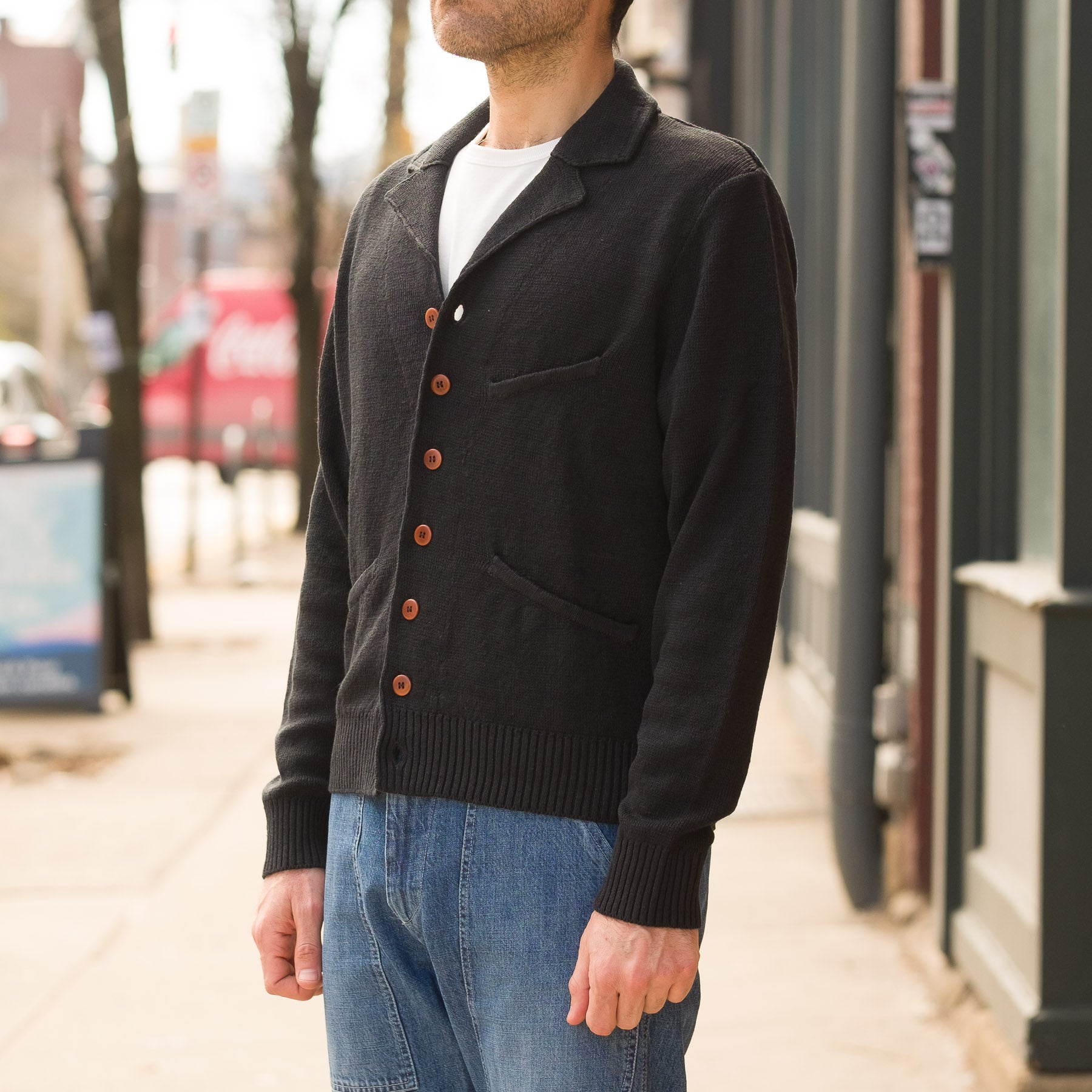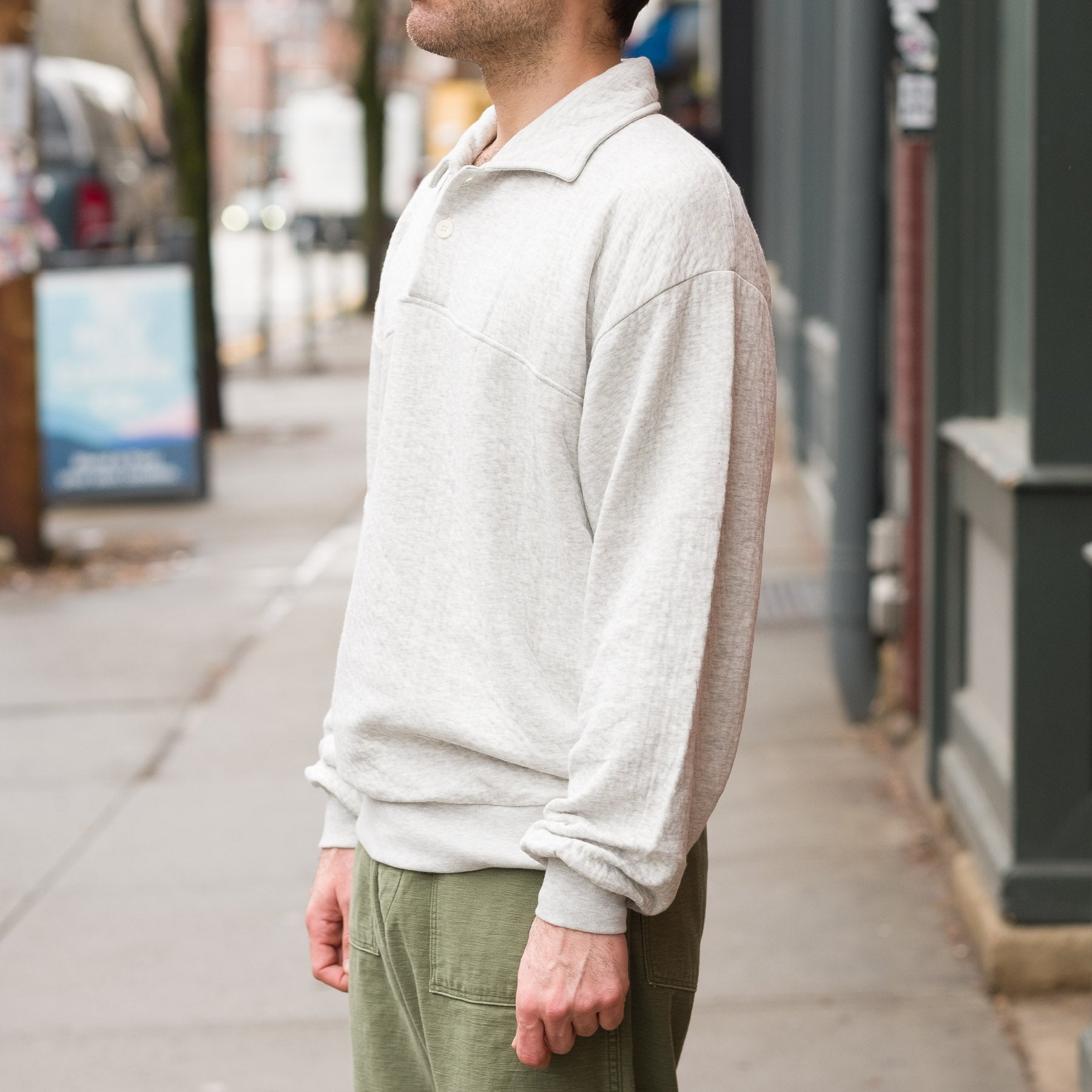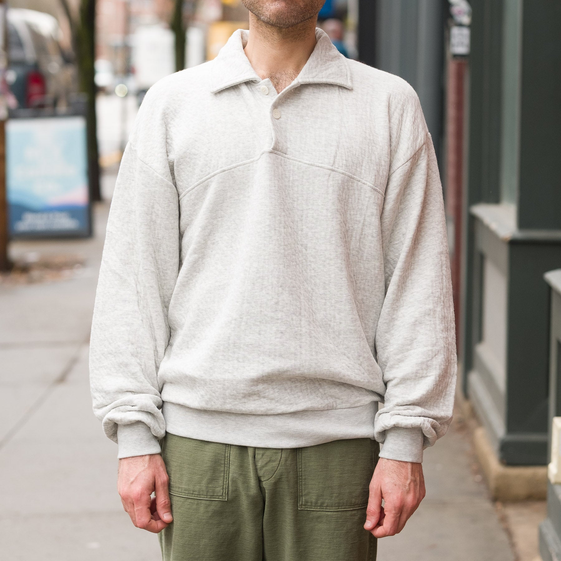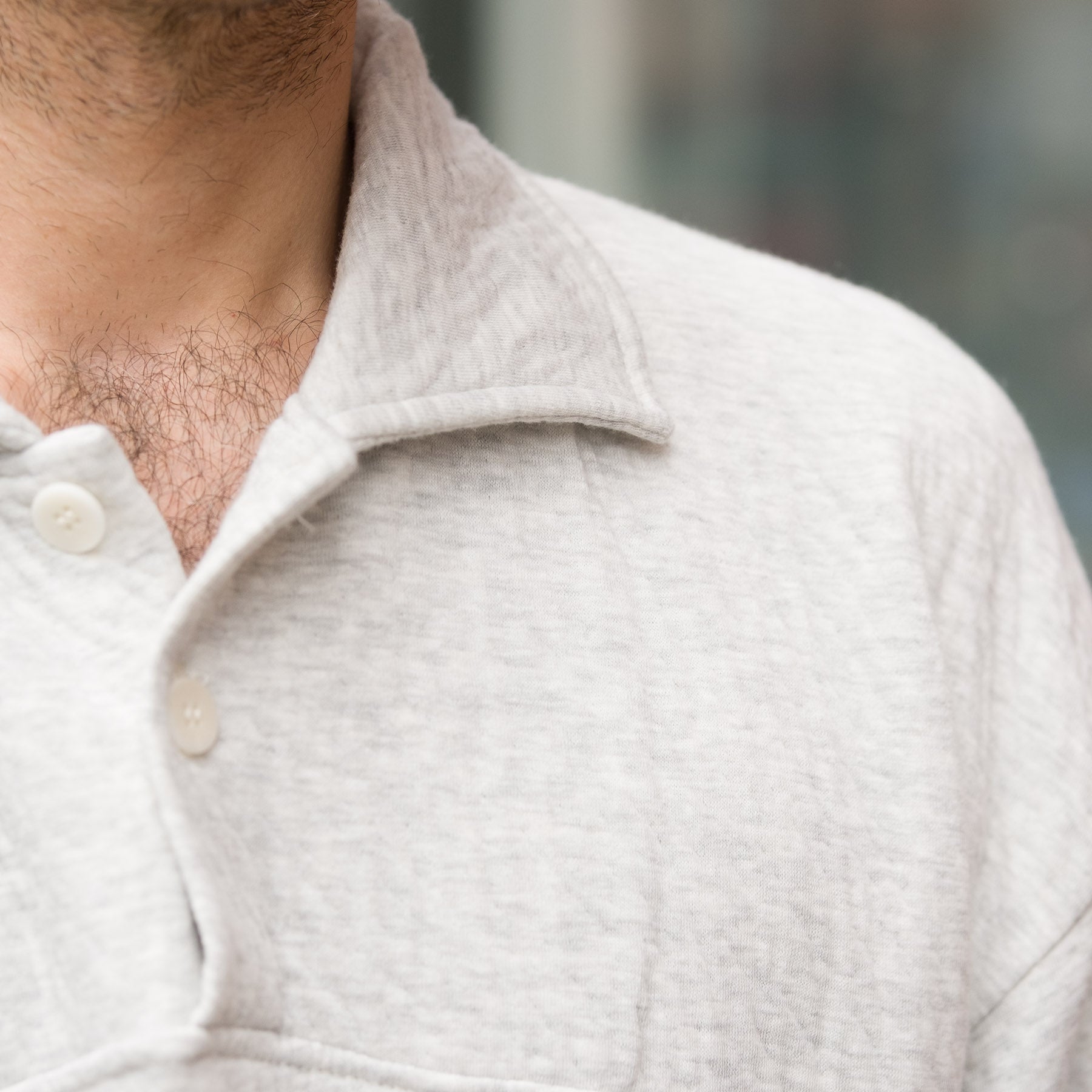 - Two-button closure with knit collar