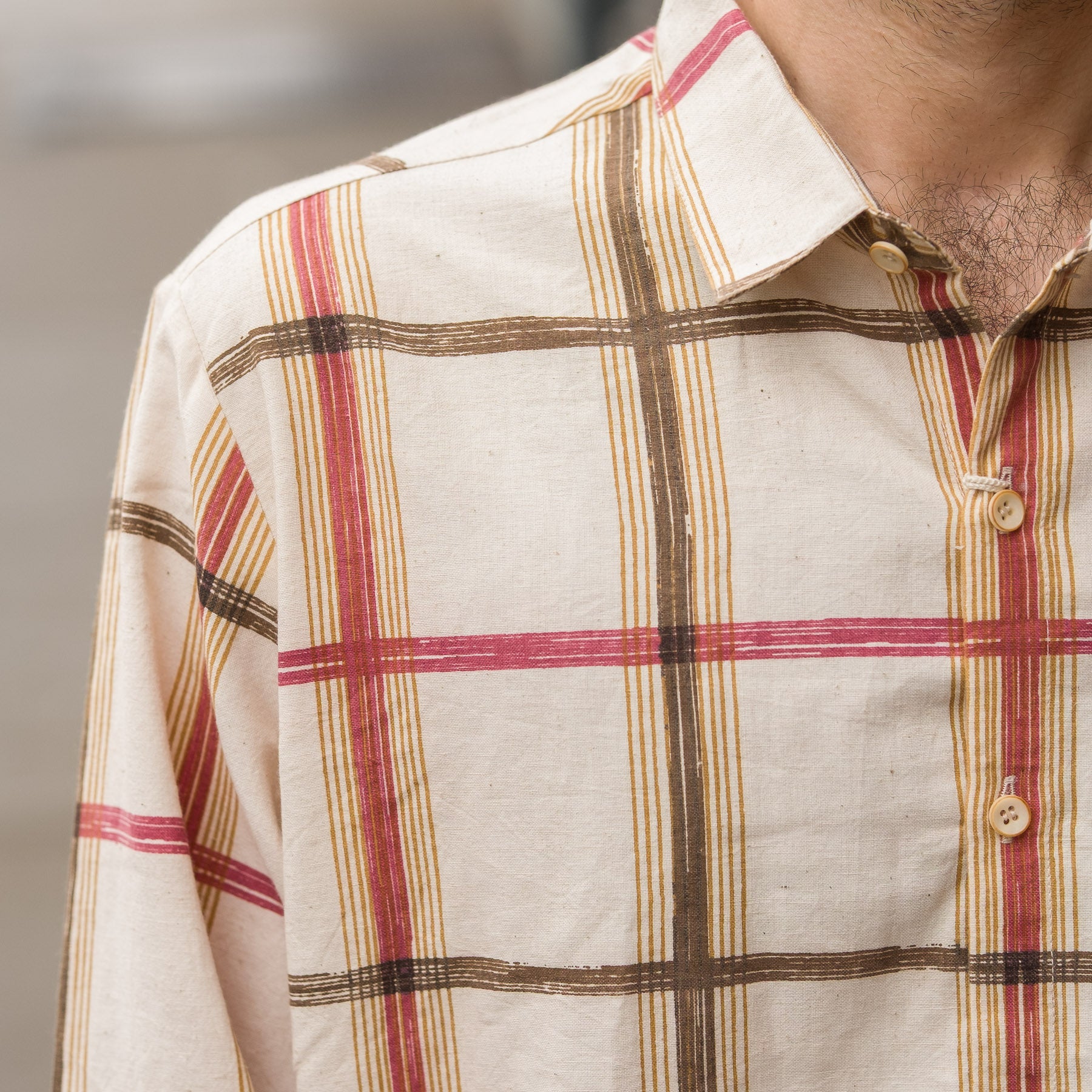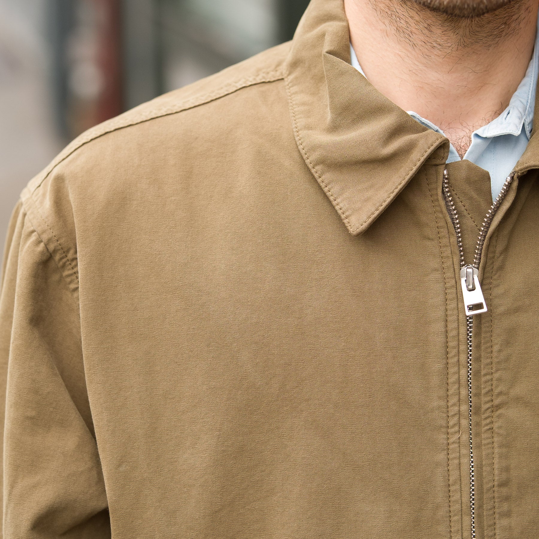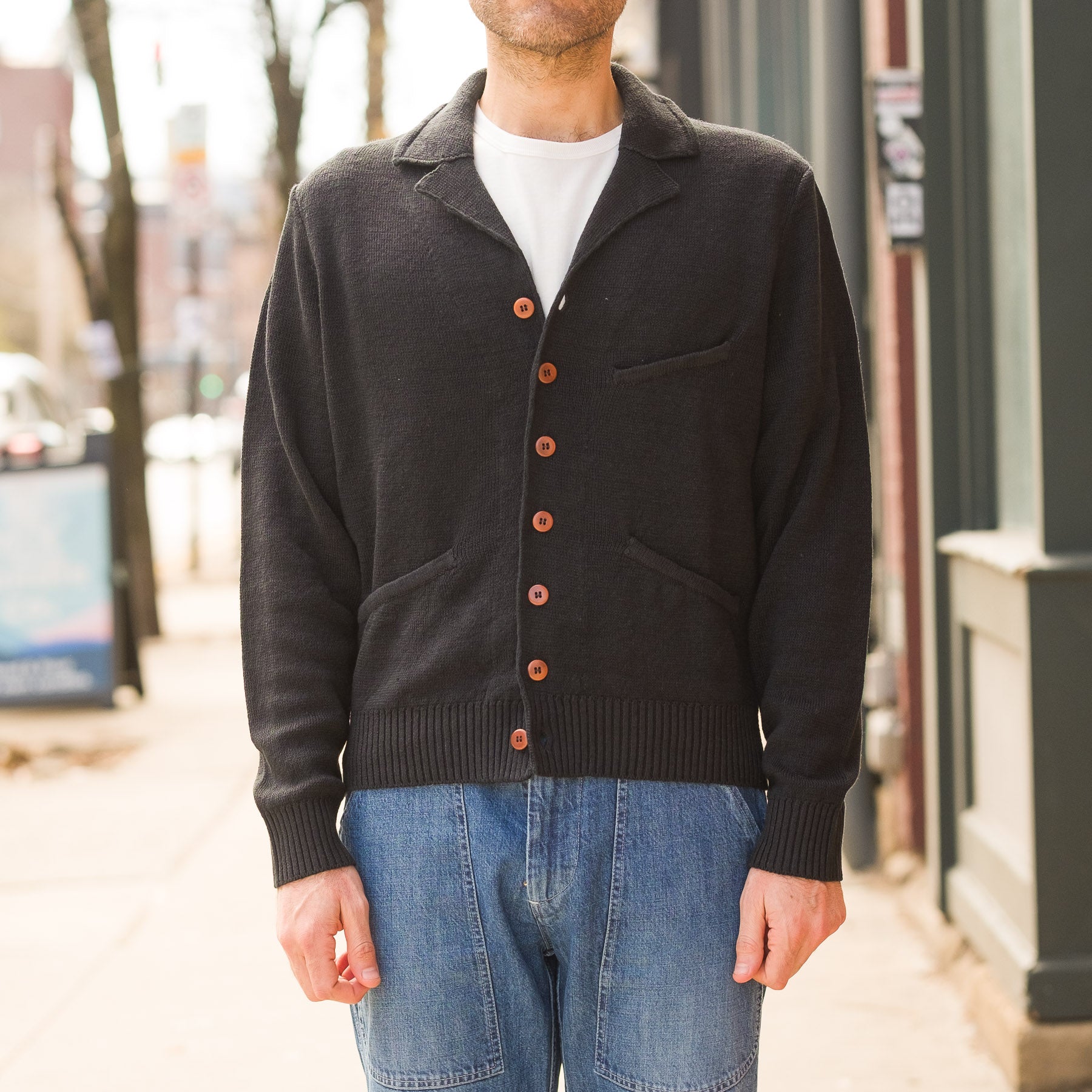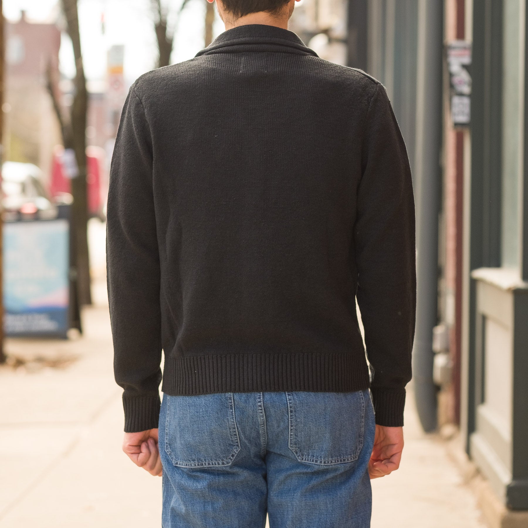 - Two-button closure with knit collar
