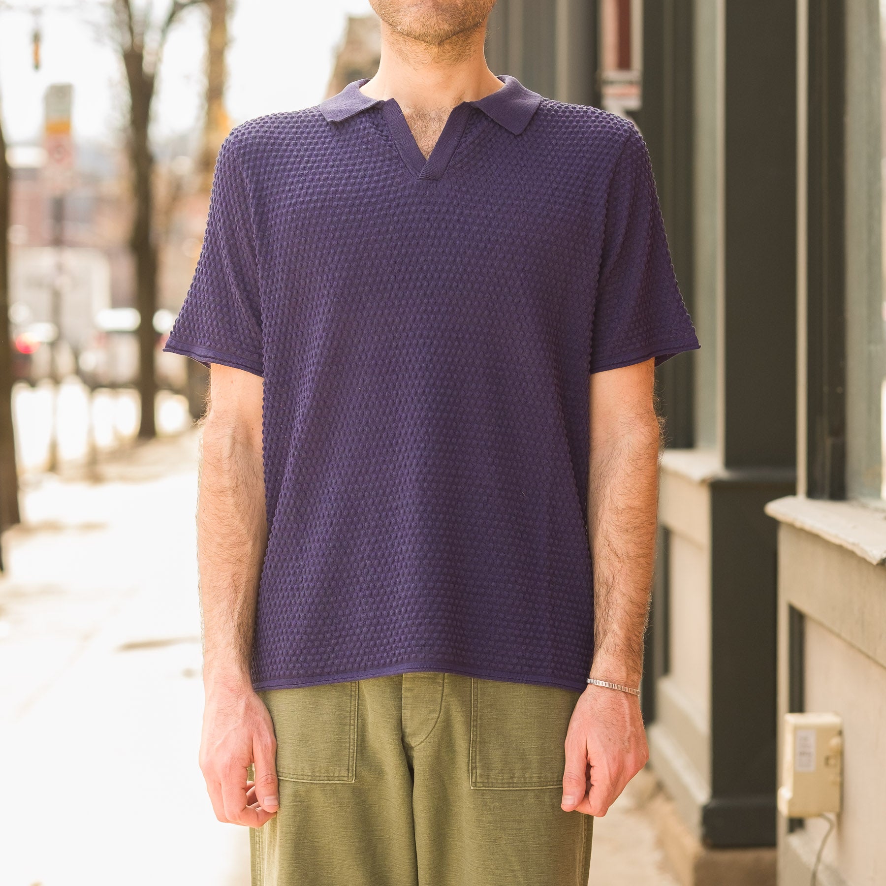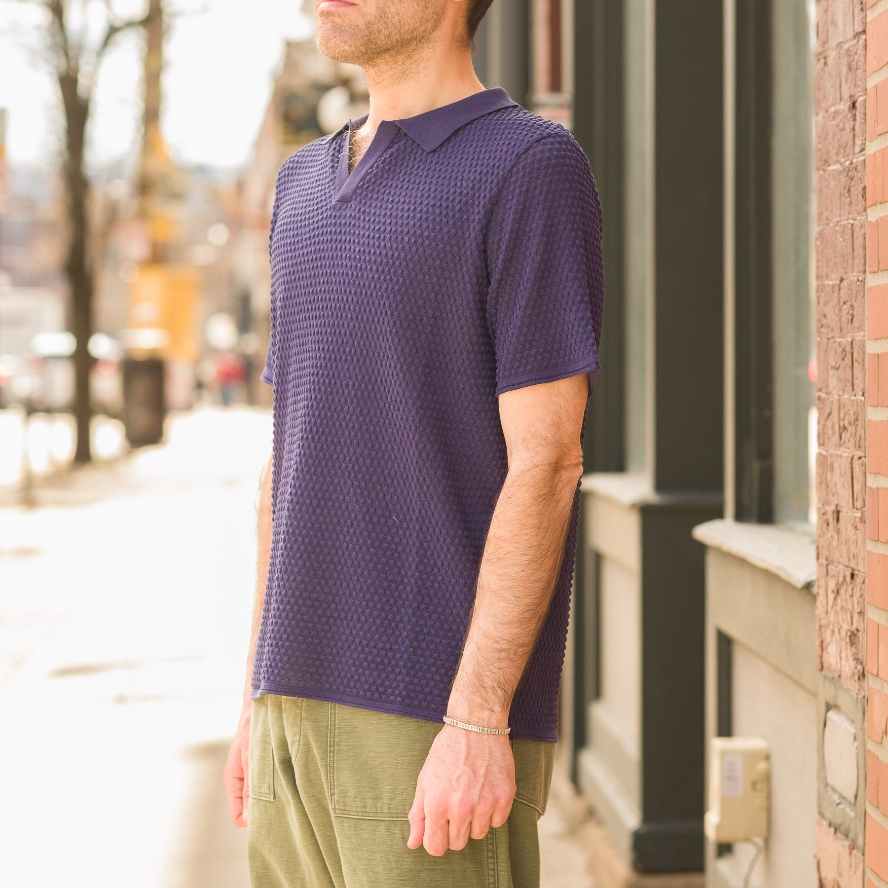 - The fabric is lightweight and features a knit pattern