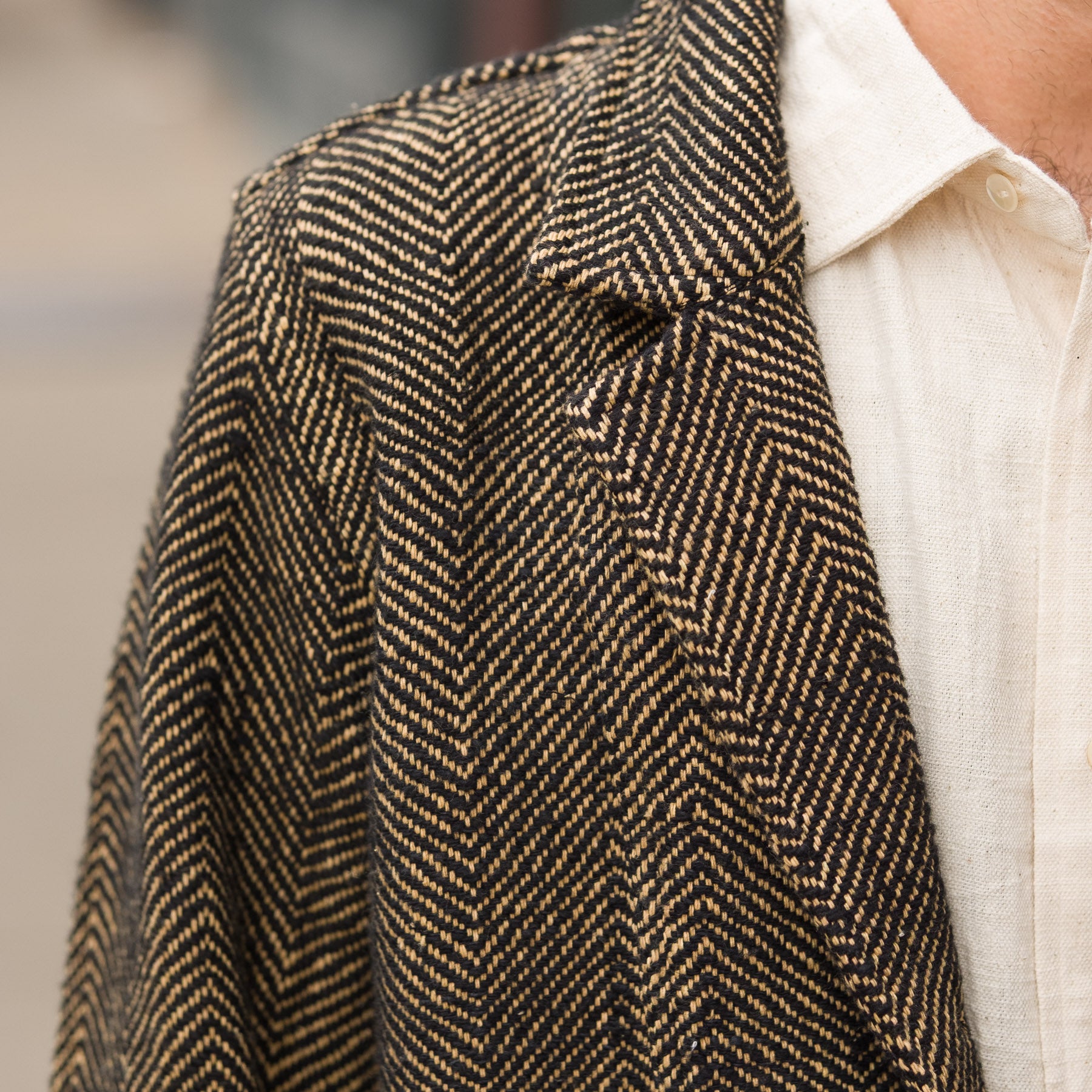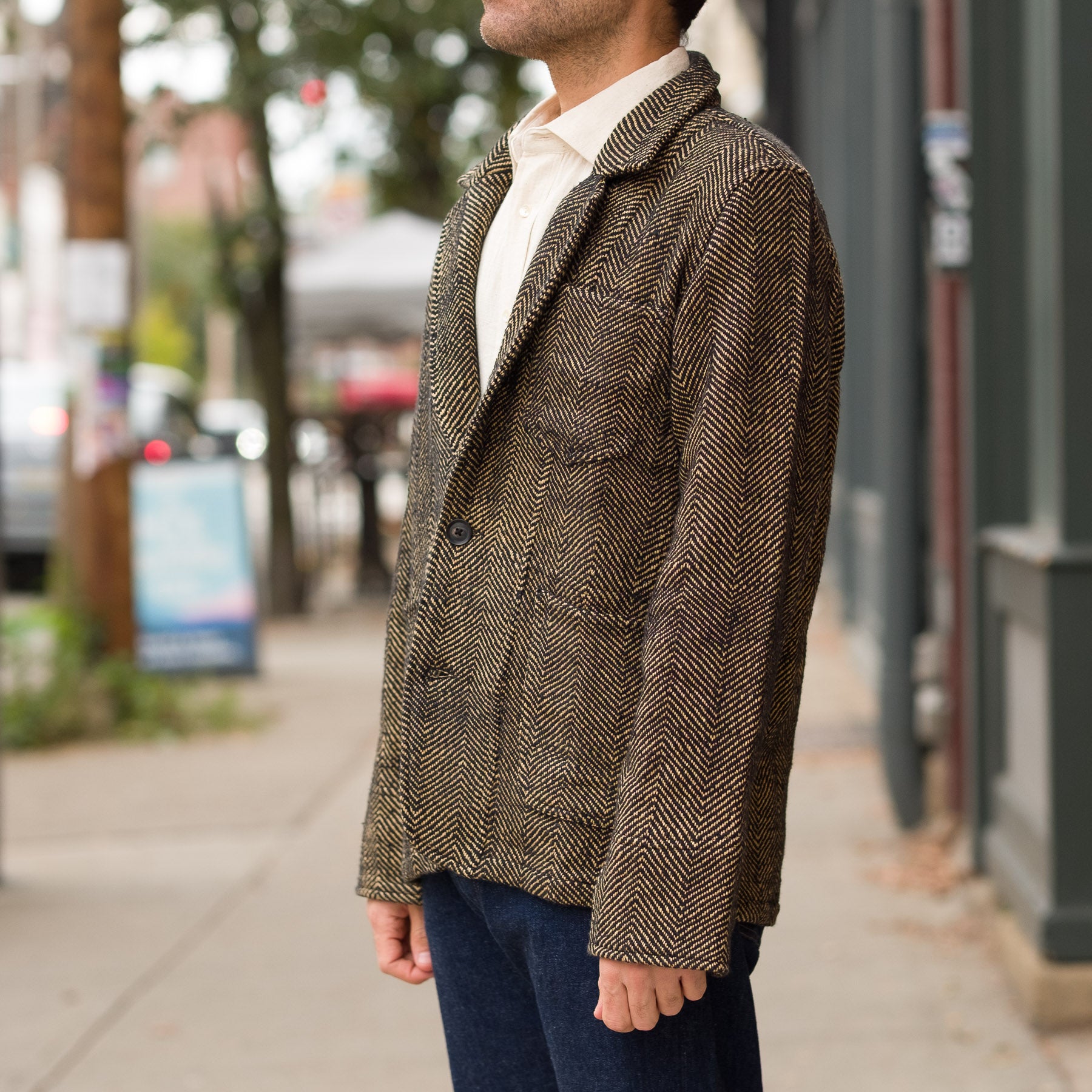 Study Jacket in Iron Black / Cutch Tan Herringbone