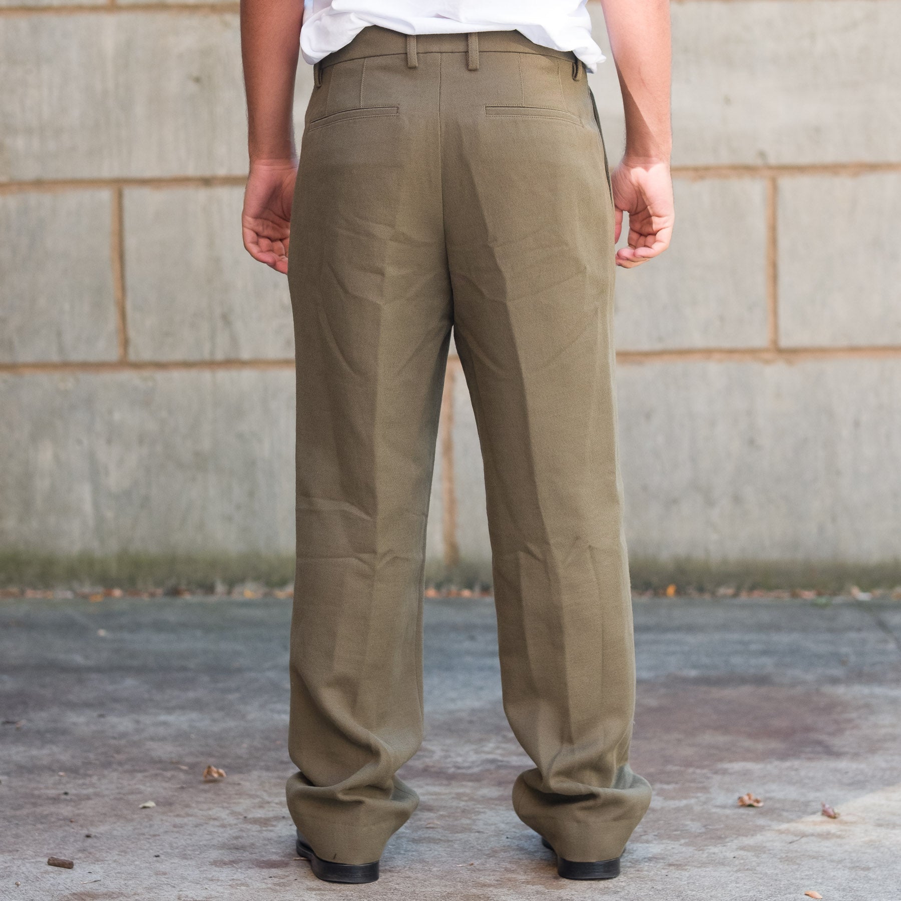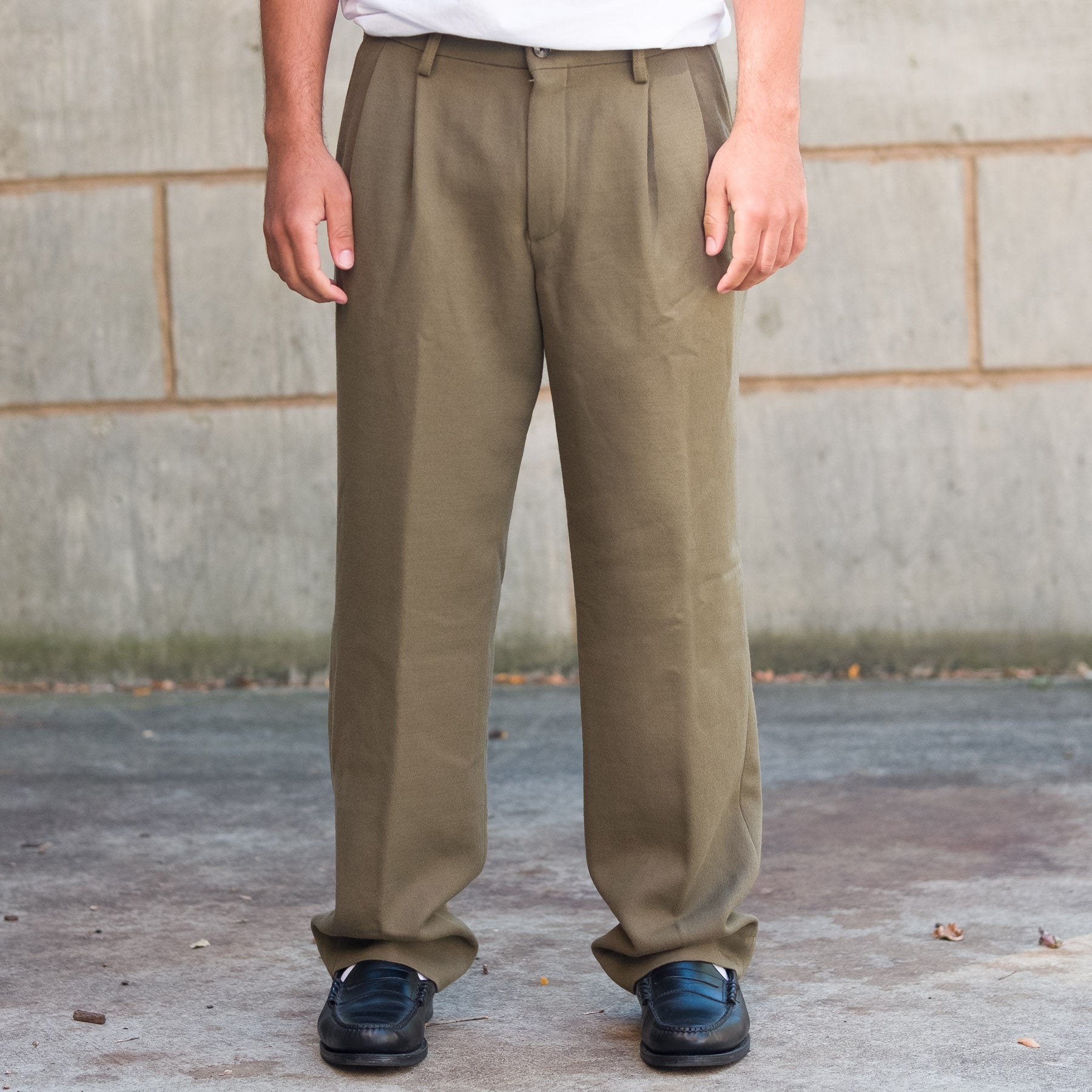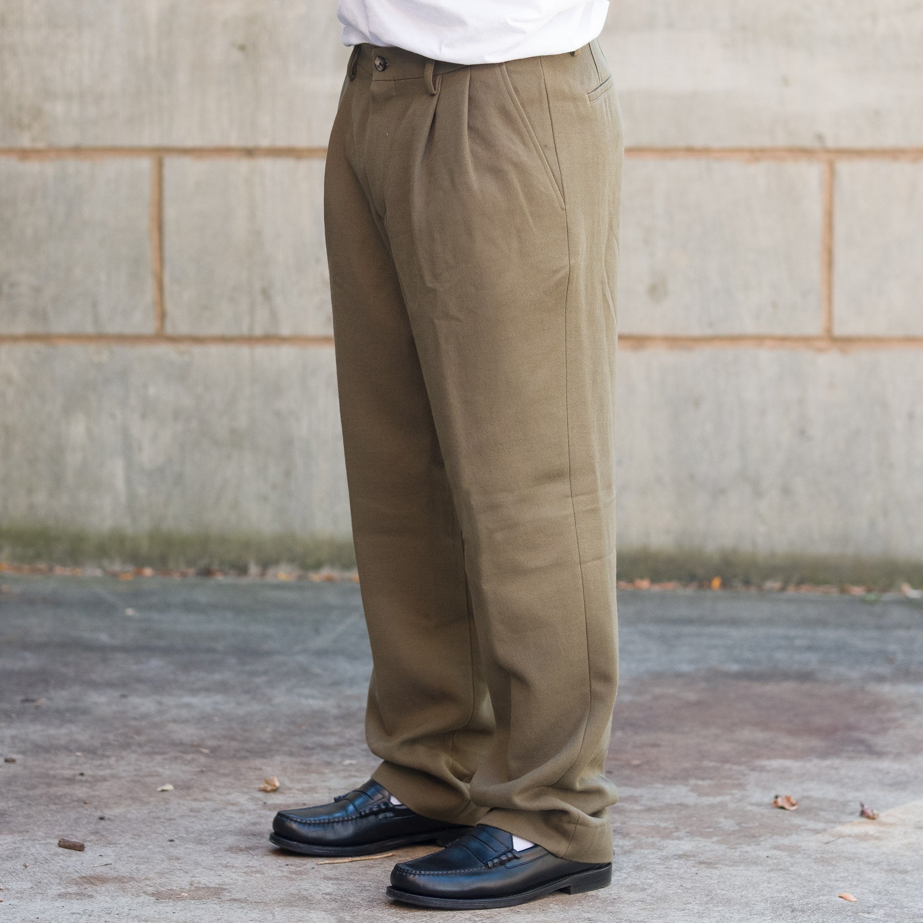 Benn Relaxed Cavalry Cotton Wool Pleated Trouser in Olive