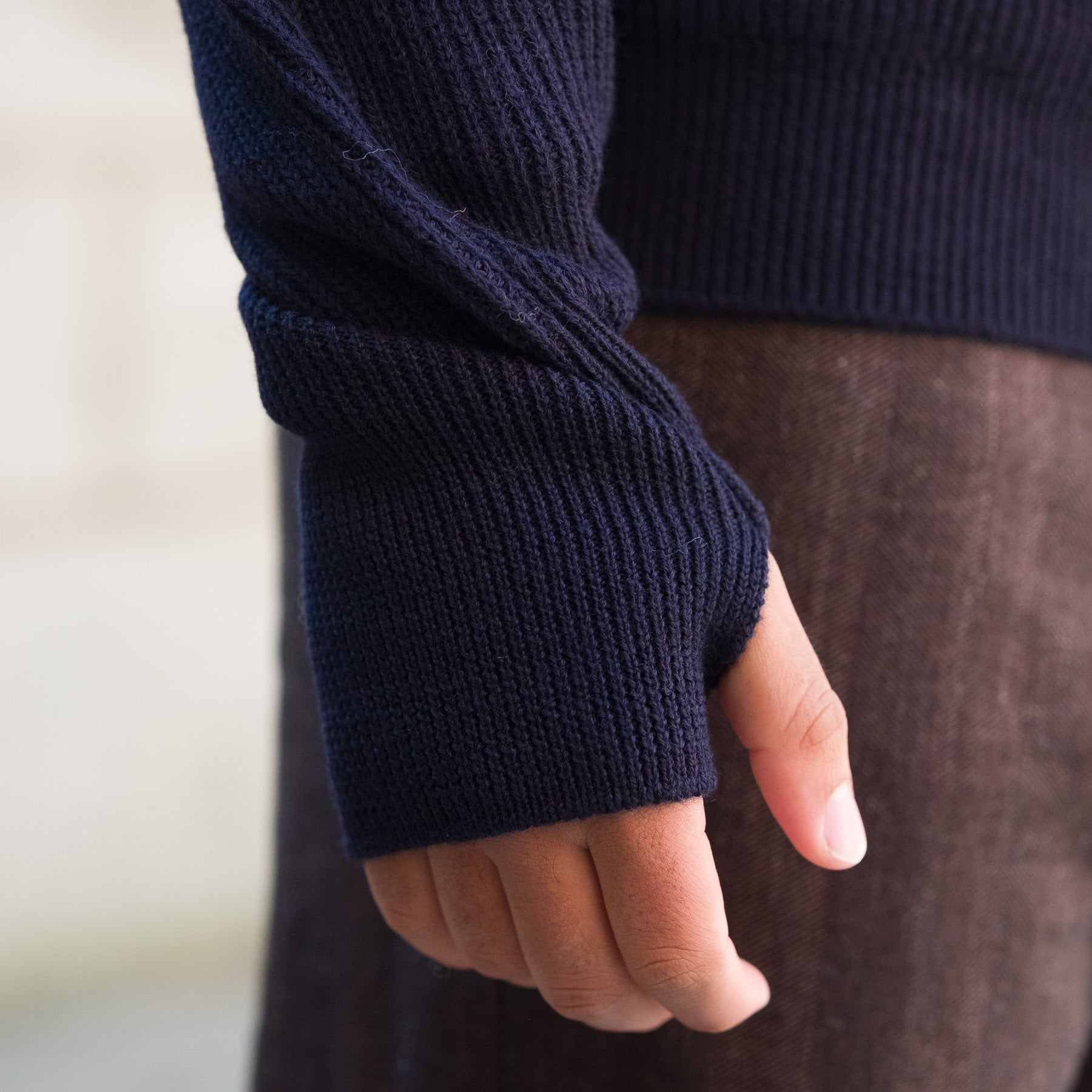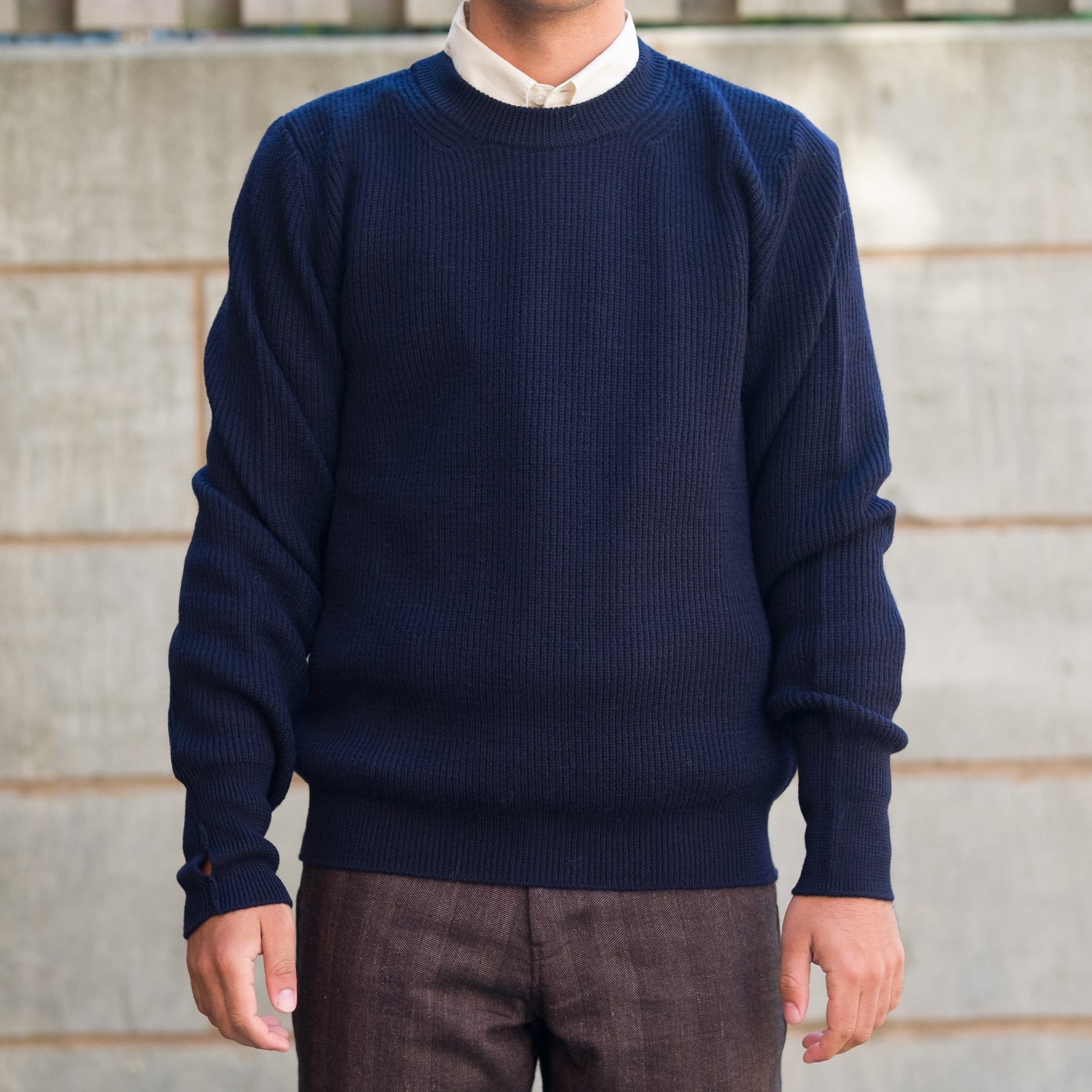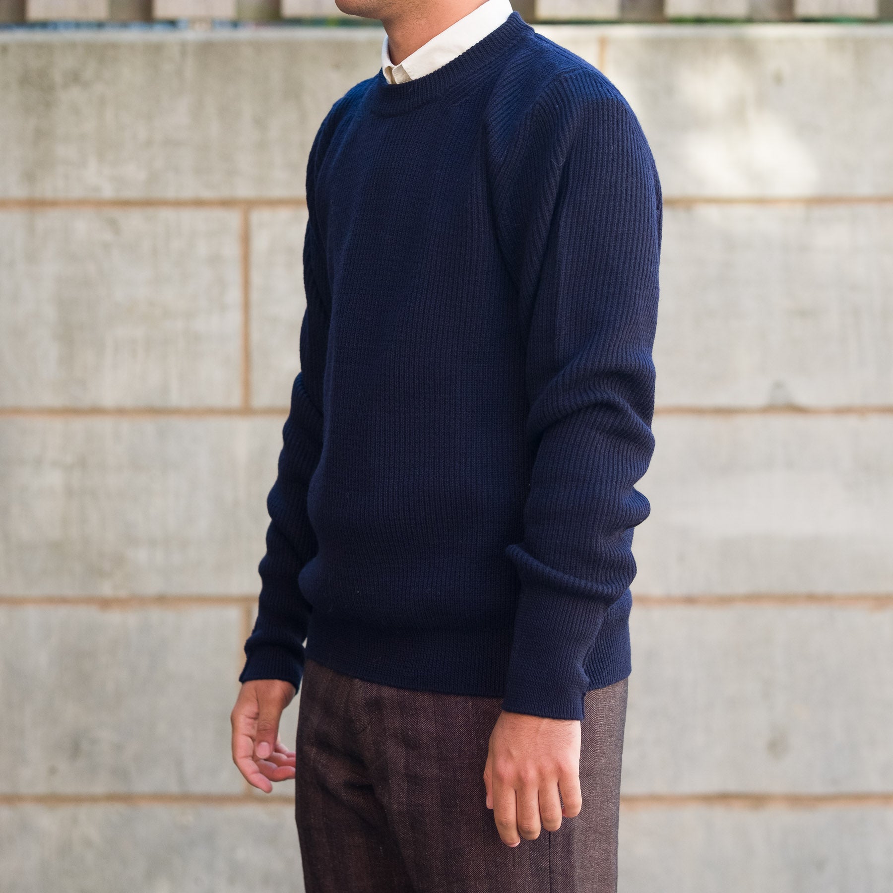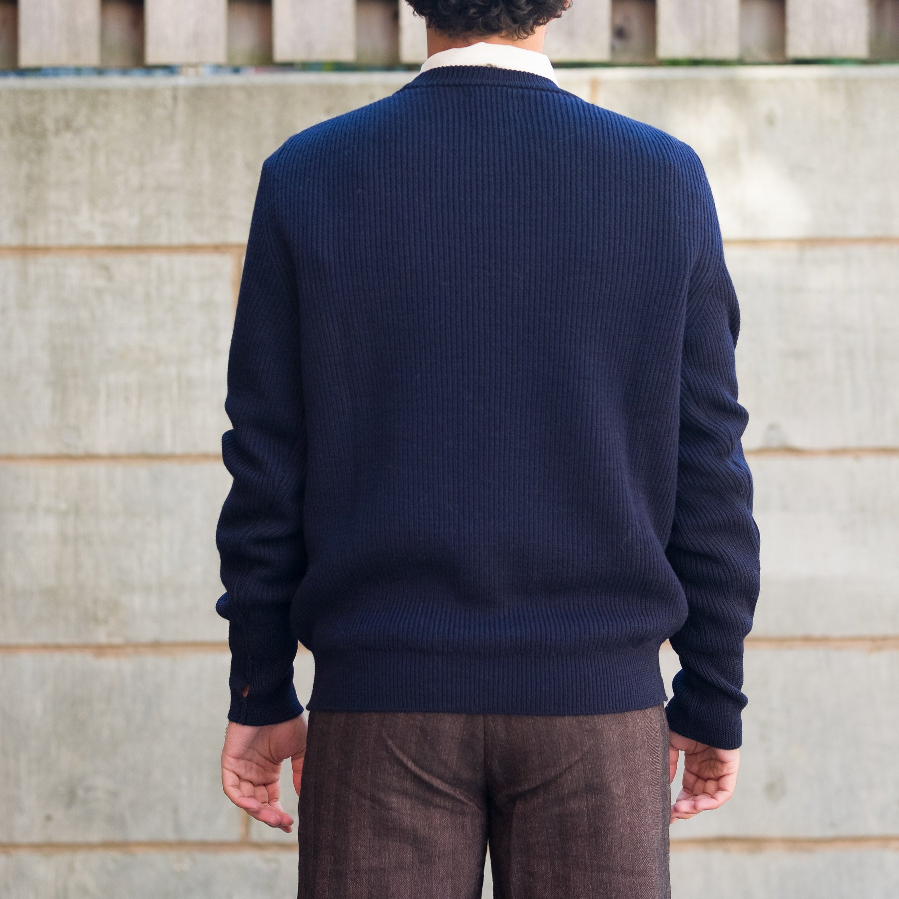 Henning Cotton Wool Rib Sweater in Dark Navy