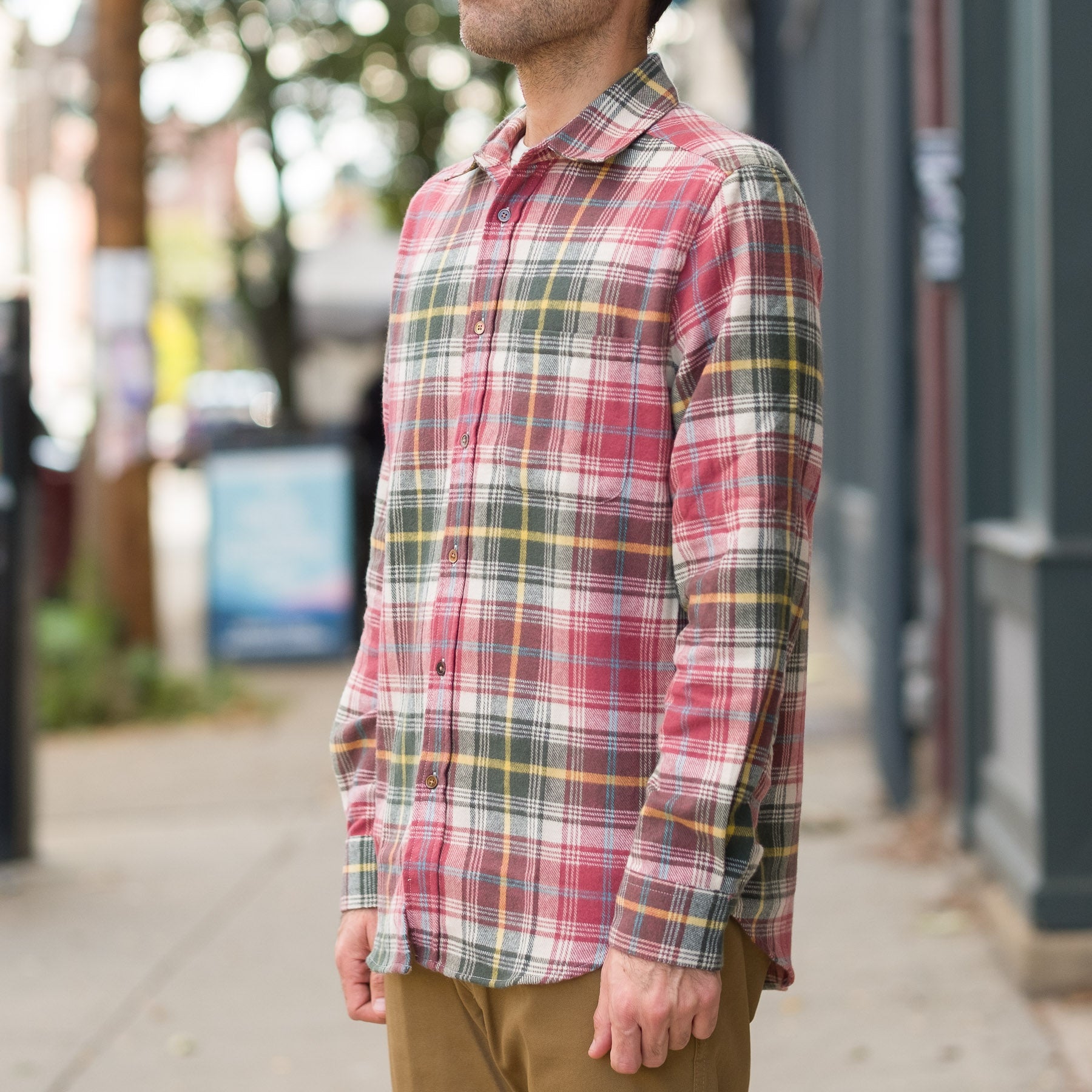 Alpi Long Sleeve Button Up in Red and Pine