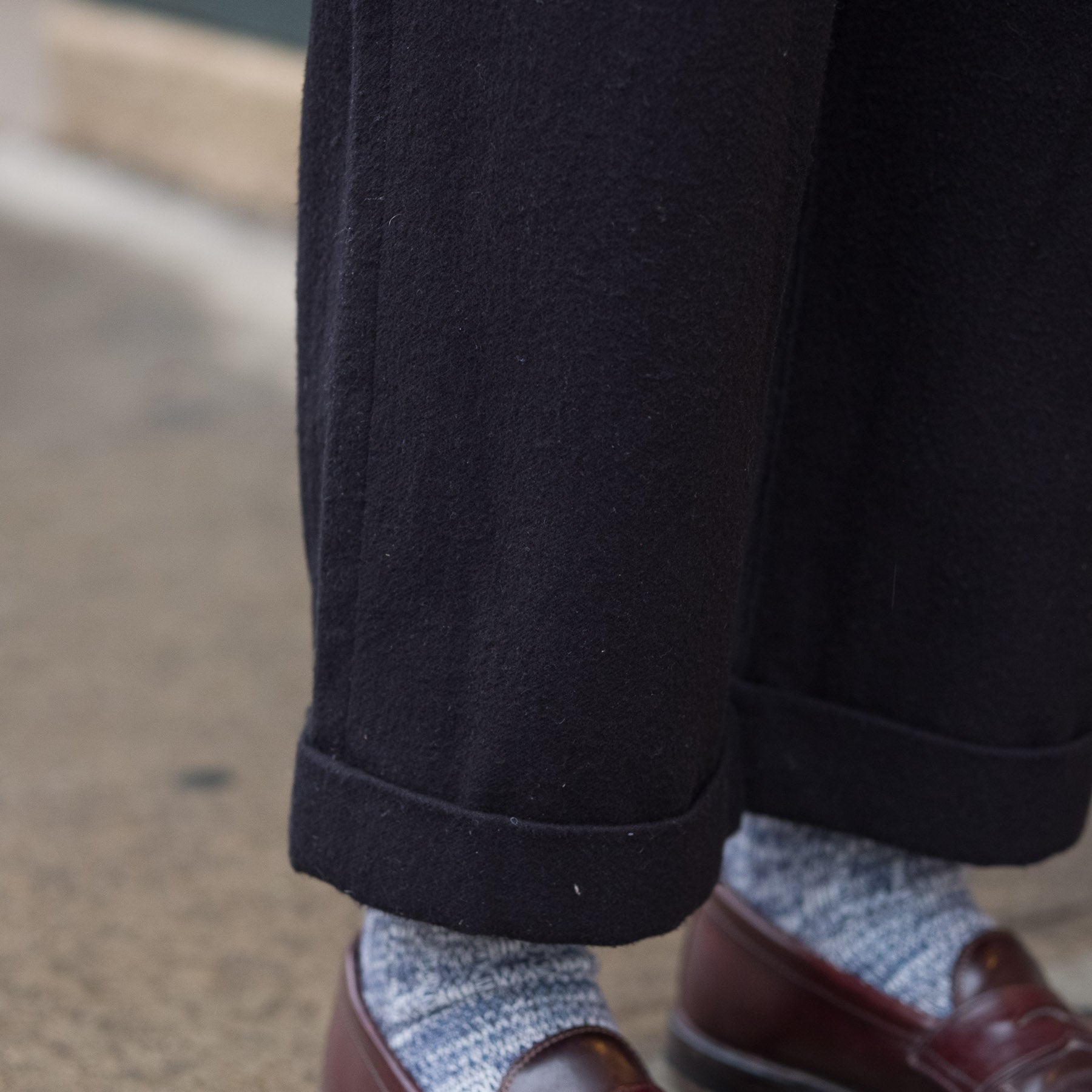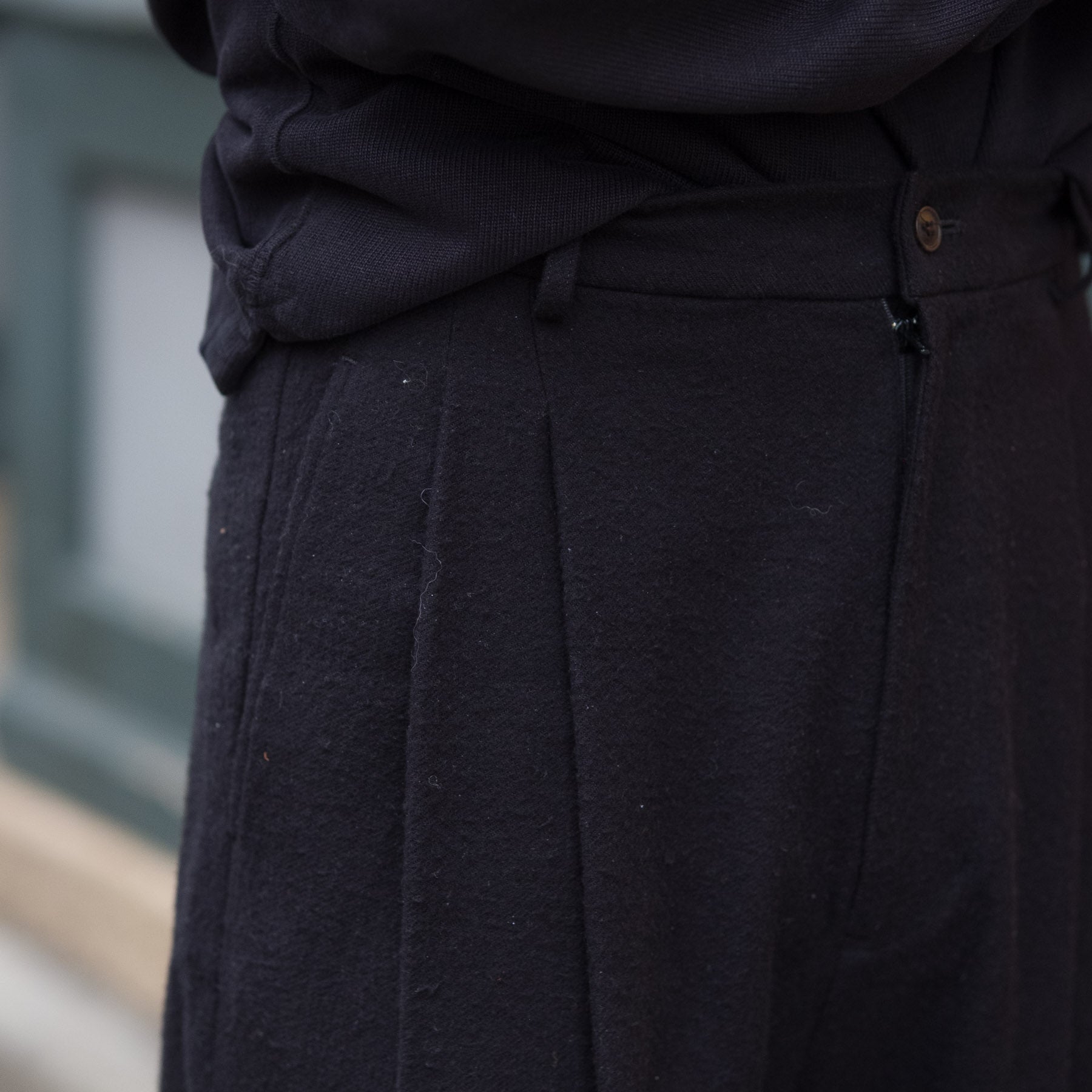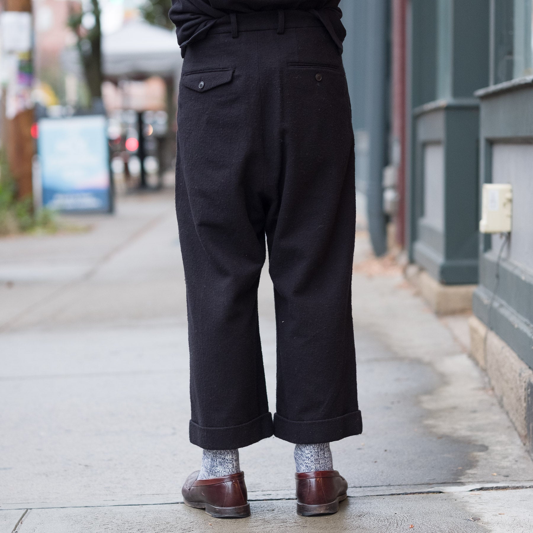 Regular price $148.00 Save $-148.00Double Pleated Cropped Trouser in Black Cotton-Silk Brushed Flannel